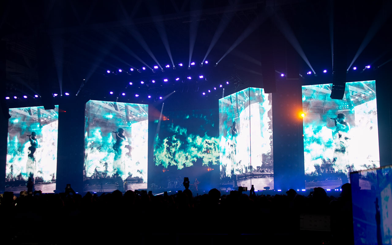 Over 730 square meters of CarbonDow P5.9 LED covered the stage in a massive design with a creative layout.
